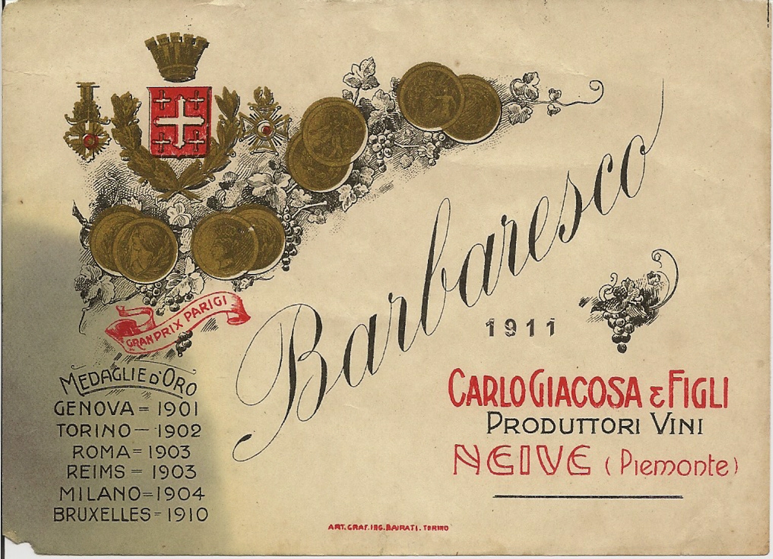 This label image was sent to me by winery. The wine was made by Bruno's grandfather, Carlo.