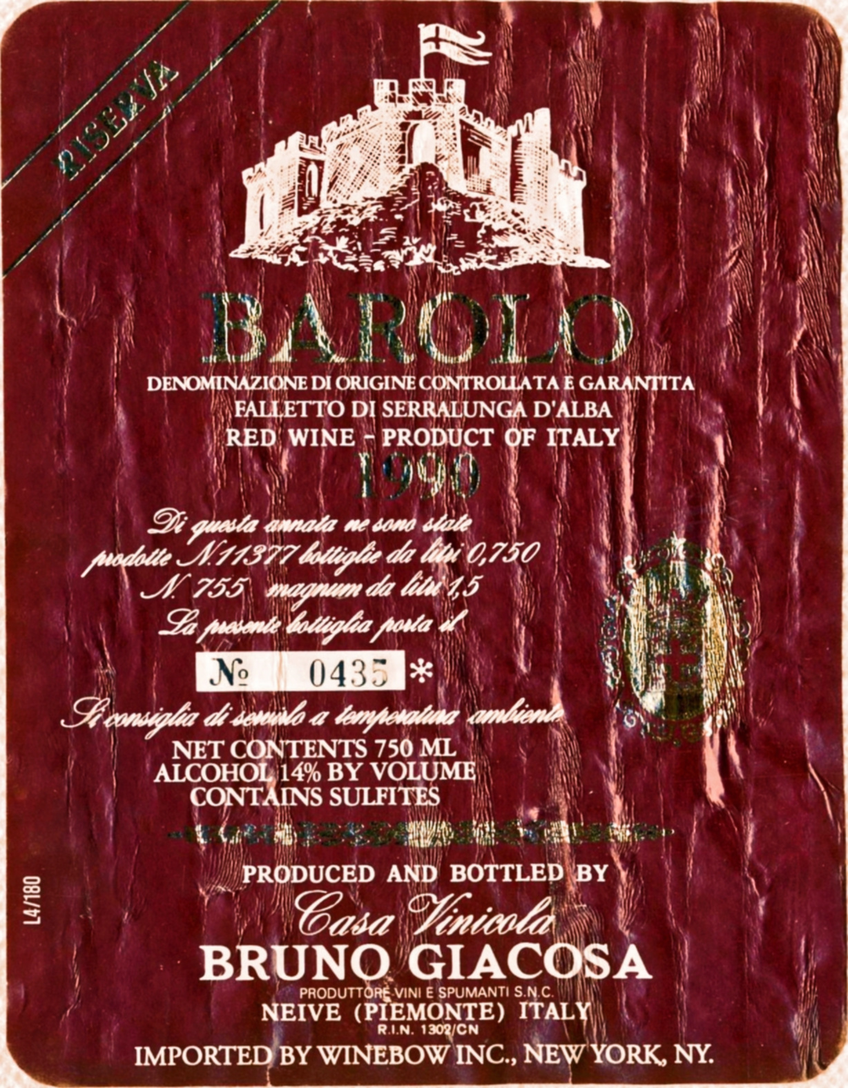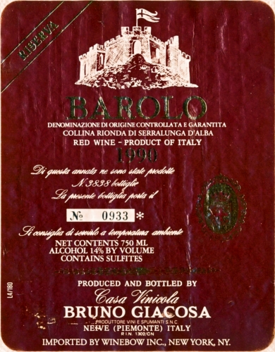 Bruno Giacosa Barolo Riserva Falletto di Serralunga d'Alba 1990
