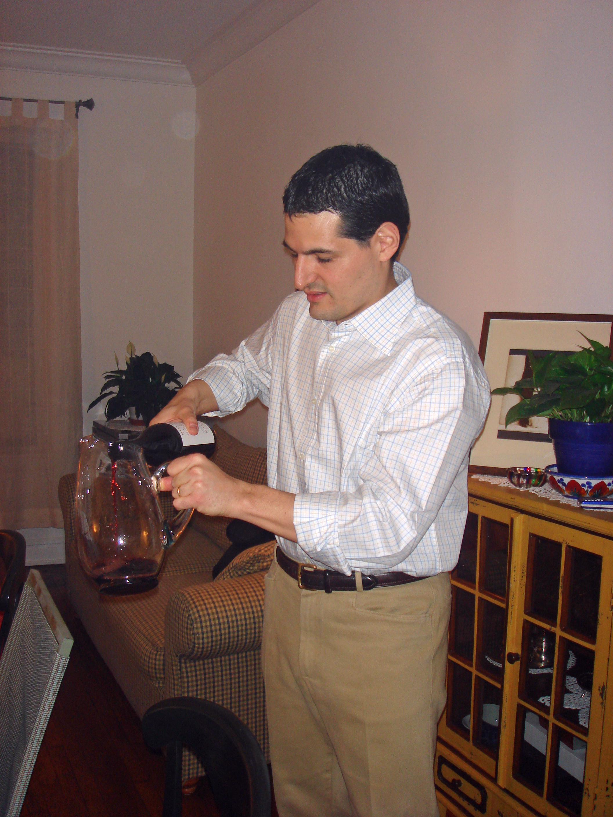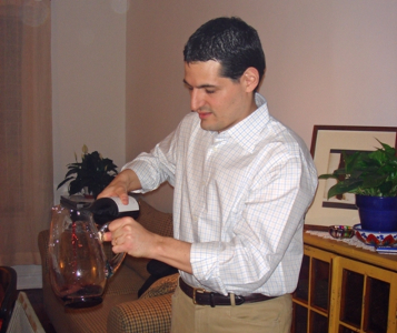 Greg and Jamie watch the decanting.