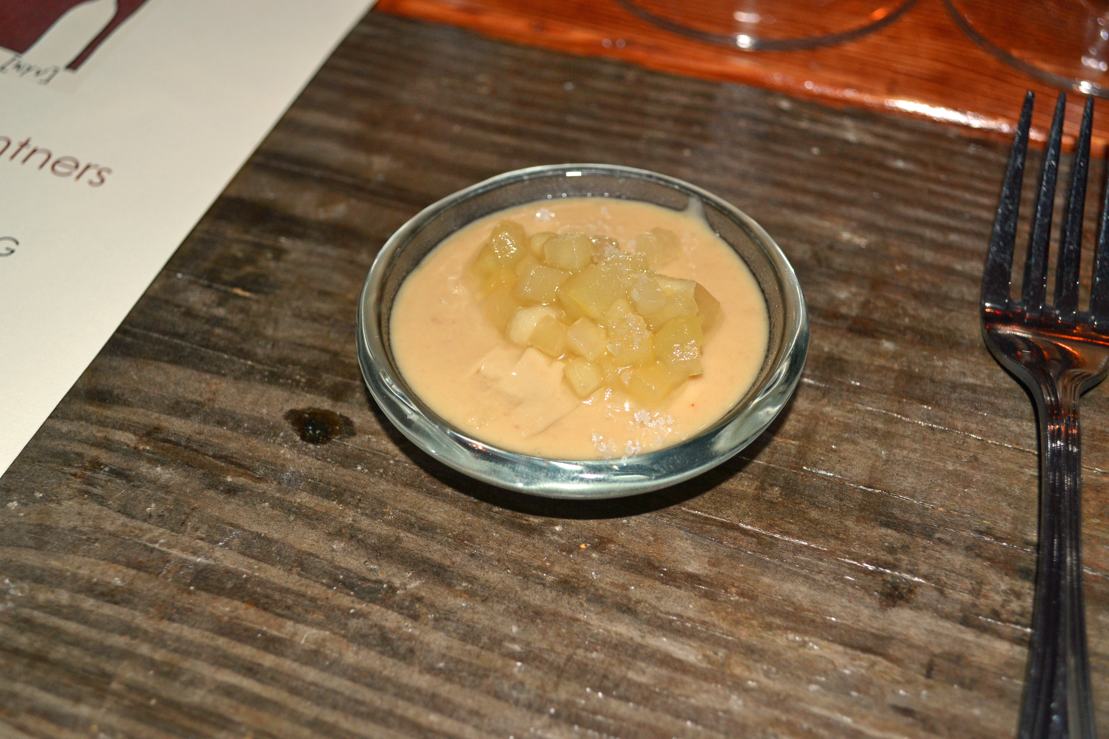 The lower right is a Hudson Valley Foie Gras Mousse with Sea Salt and Gingered Apples on top.