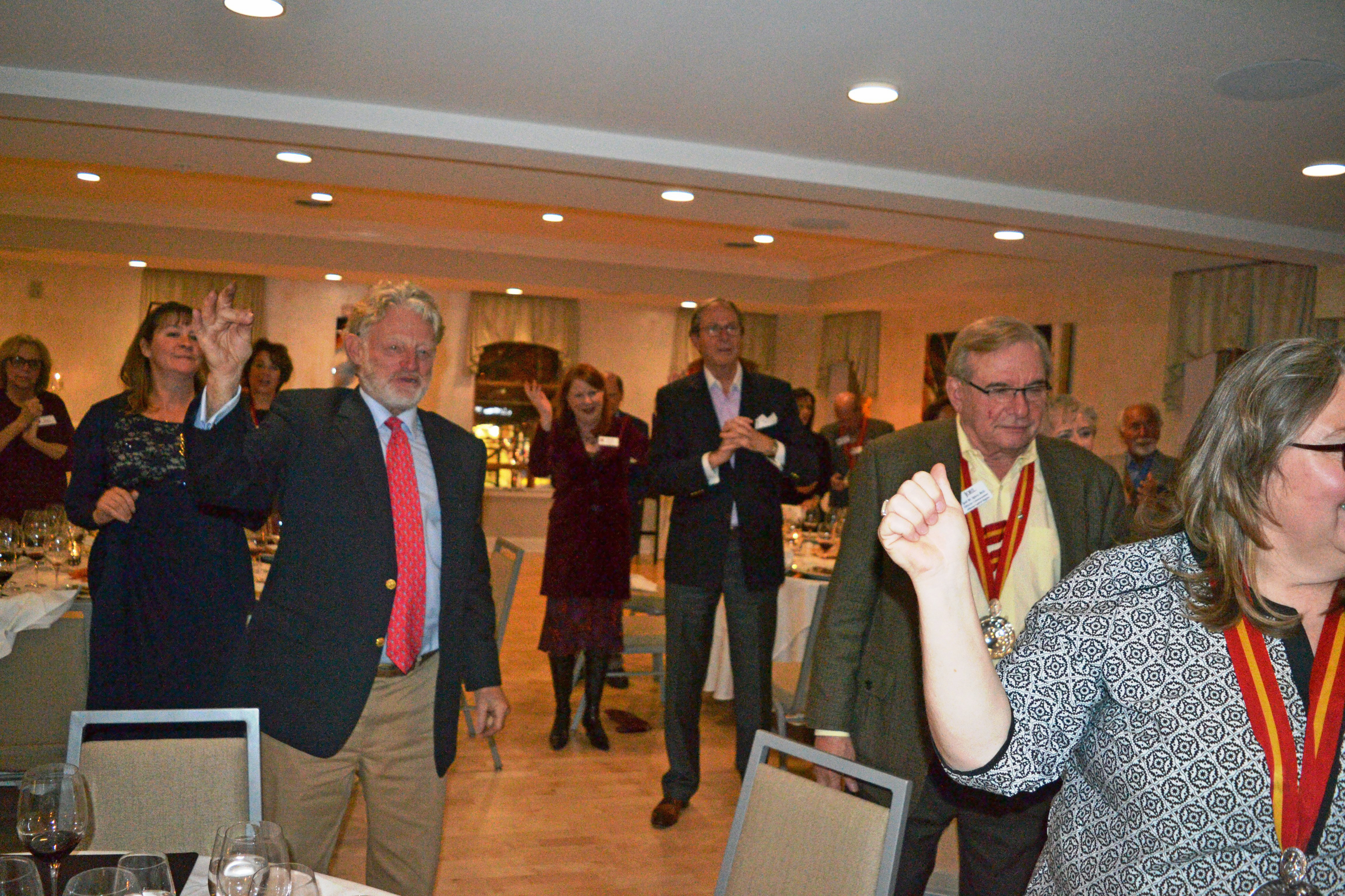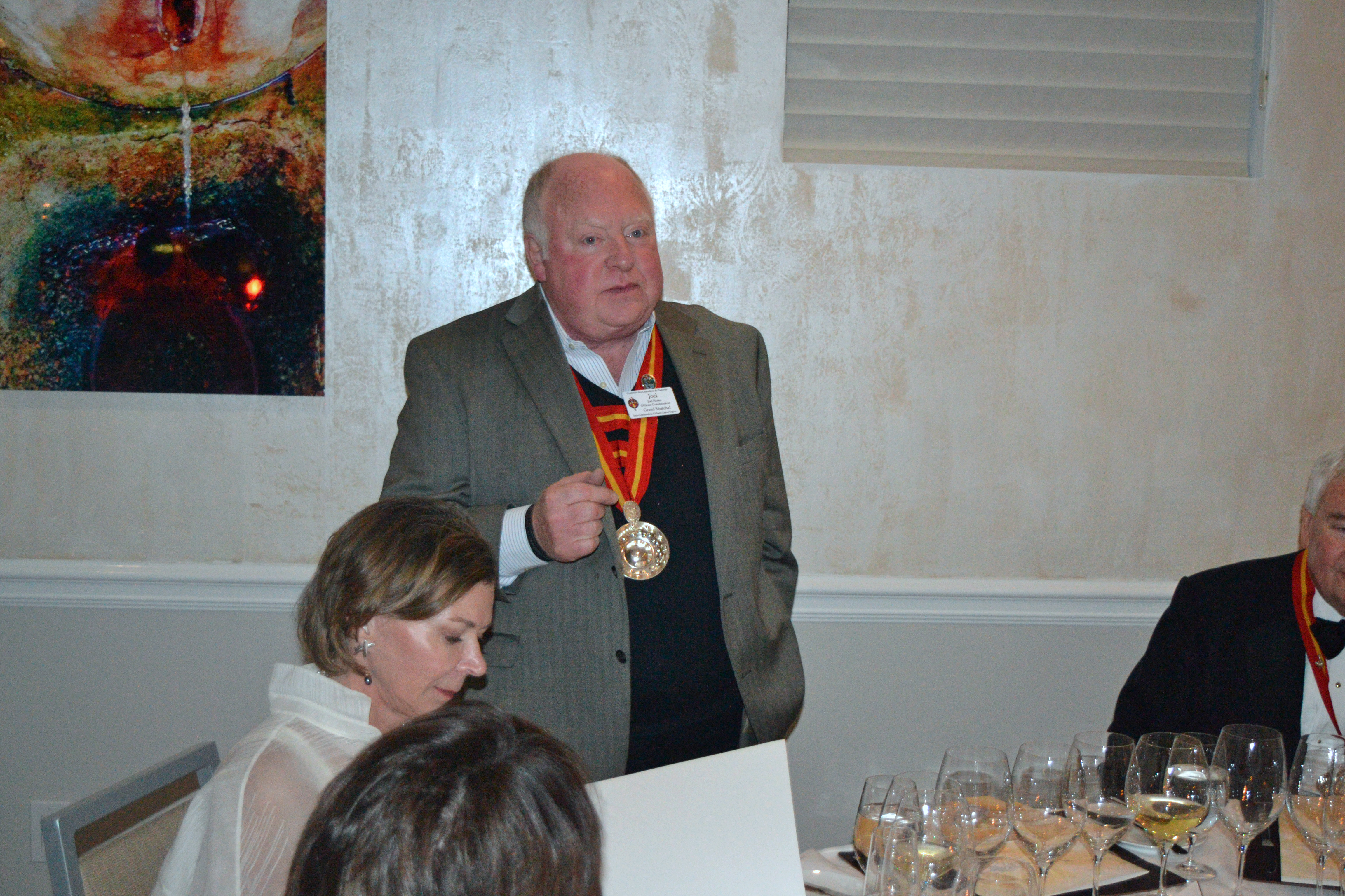 Grand Sénéchal Joel Hodes encourages everyone to sit down to dinner.