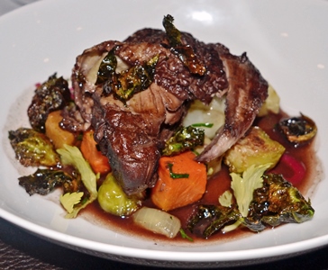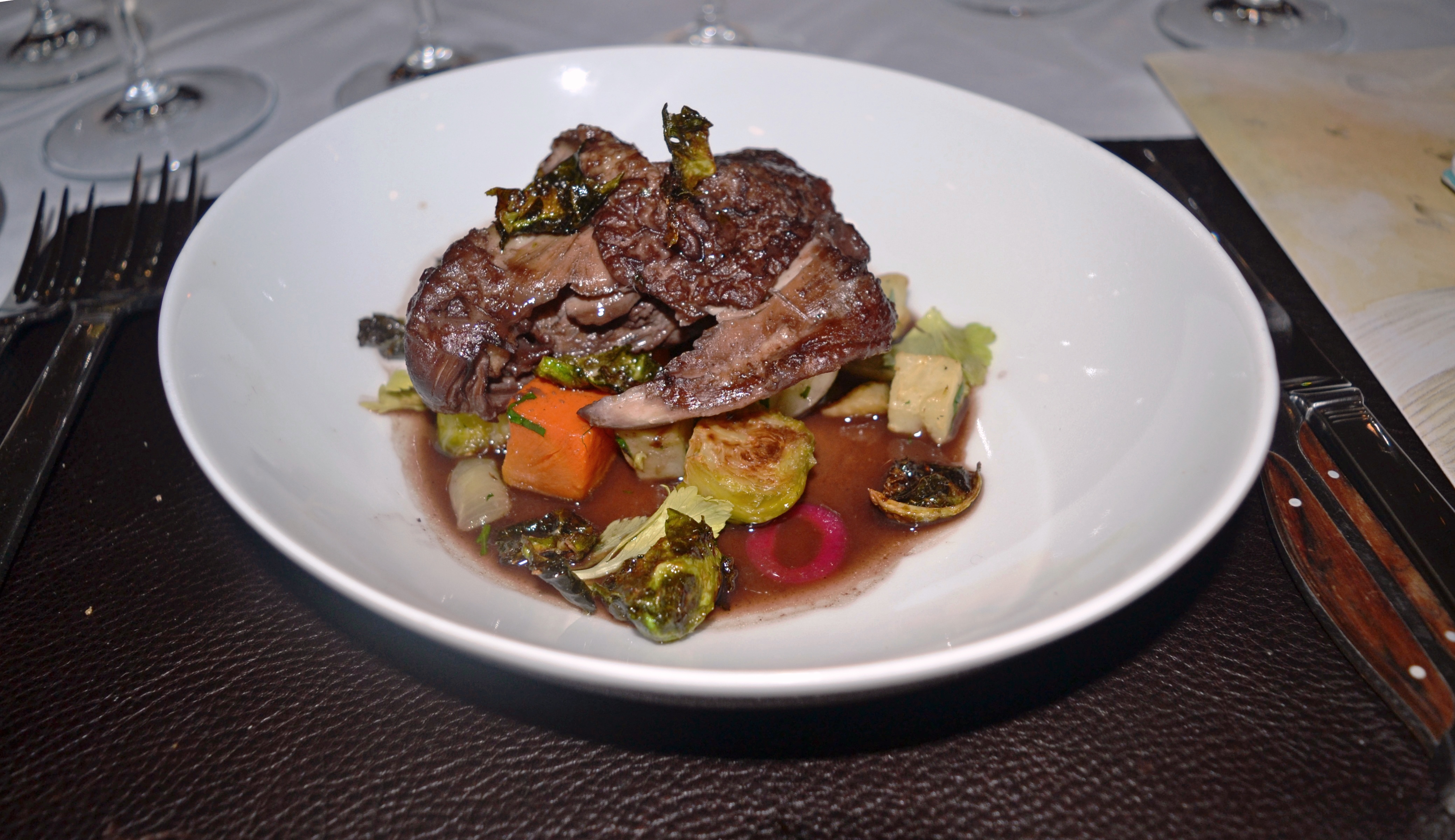 Braised Pork Belly, Maitake mushrooms, Sherry Jus. Delicious, but overpowered the wine.