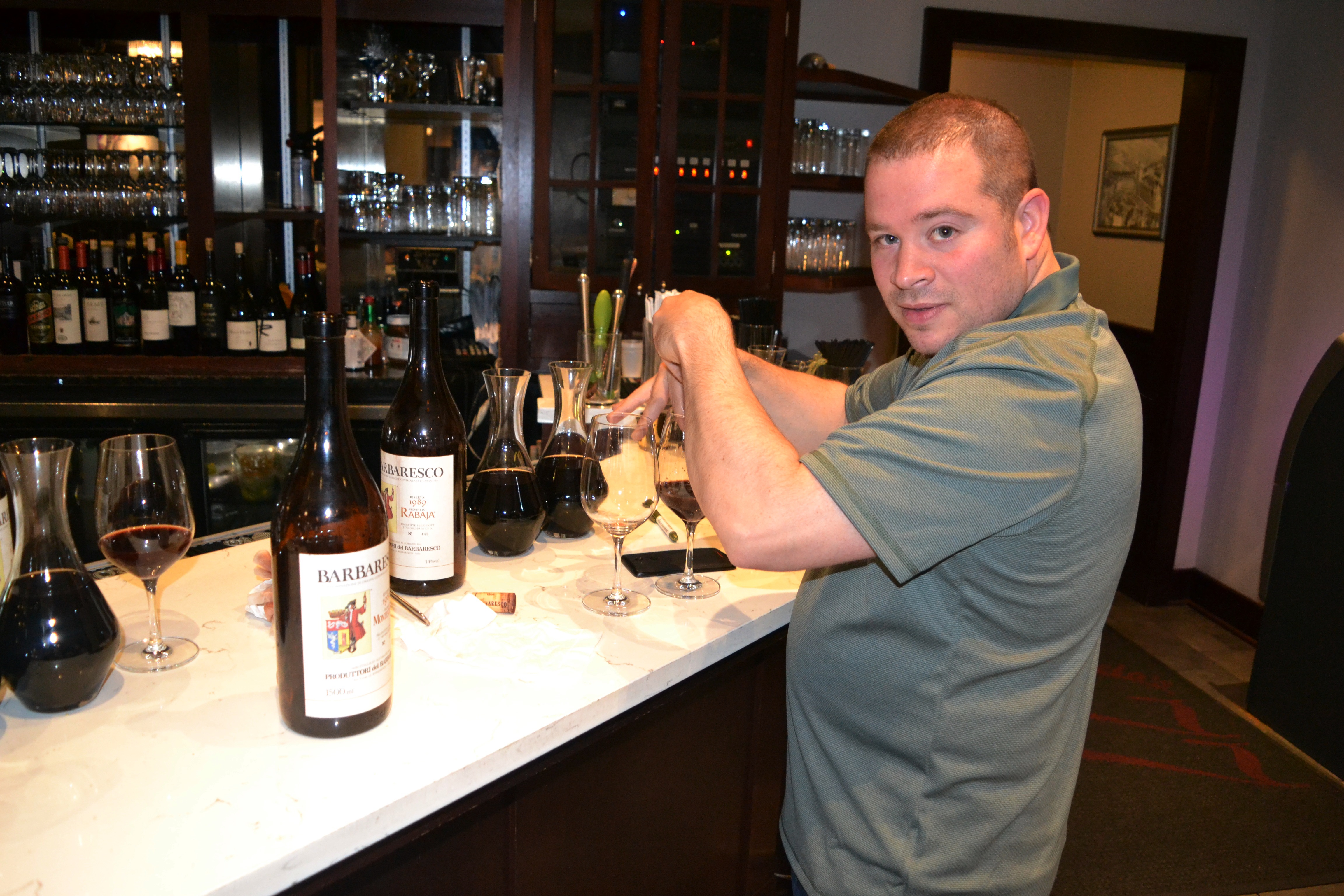 Jared decanting the 1989 Produttori del Barbaresco magnums: