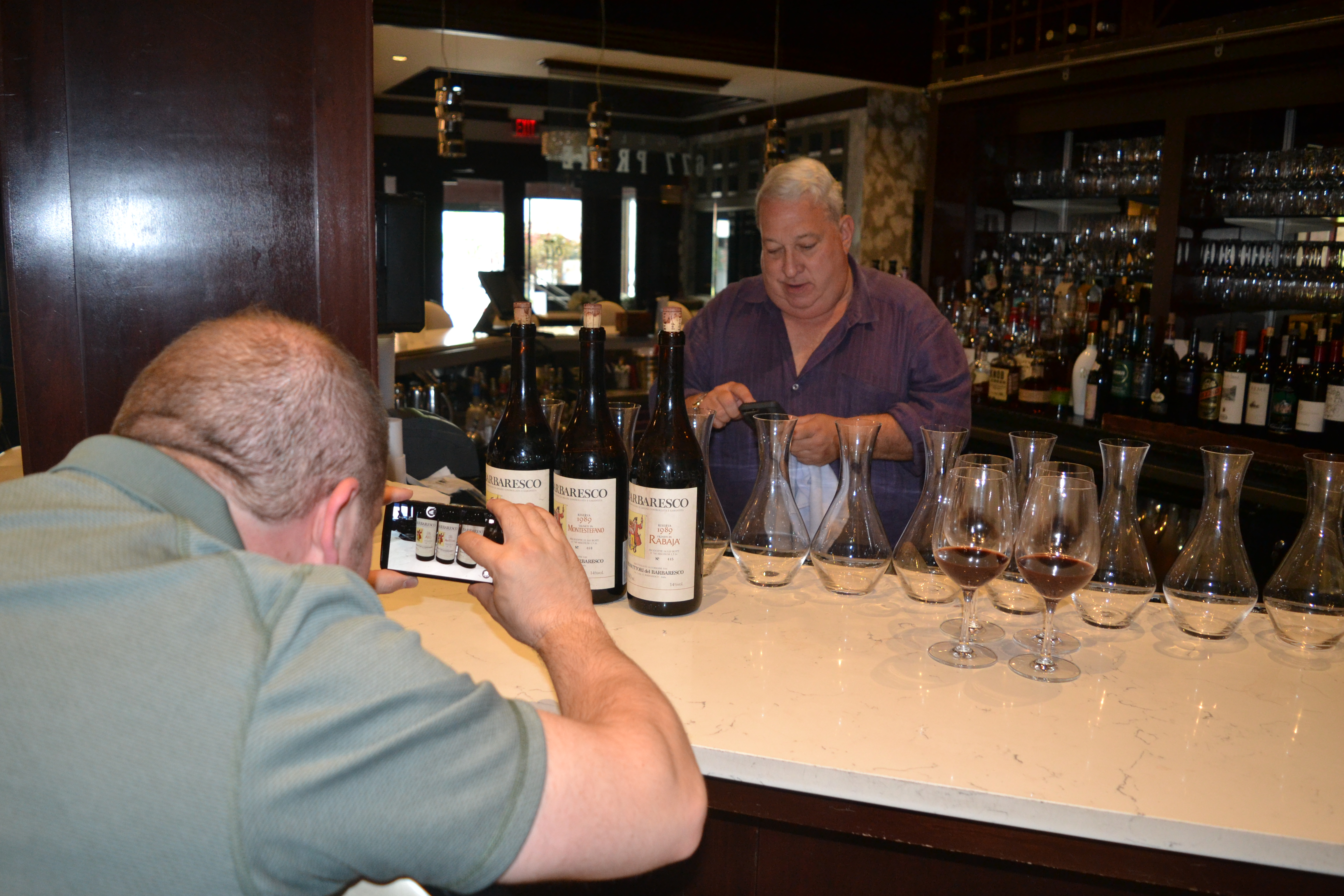 Jared snaps a photo of our host and the three decanted magnums of Produttori Barbaresco: