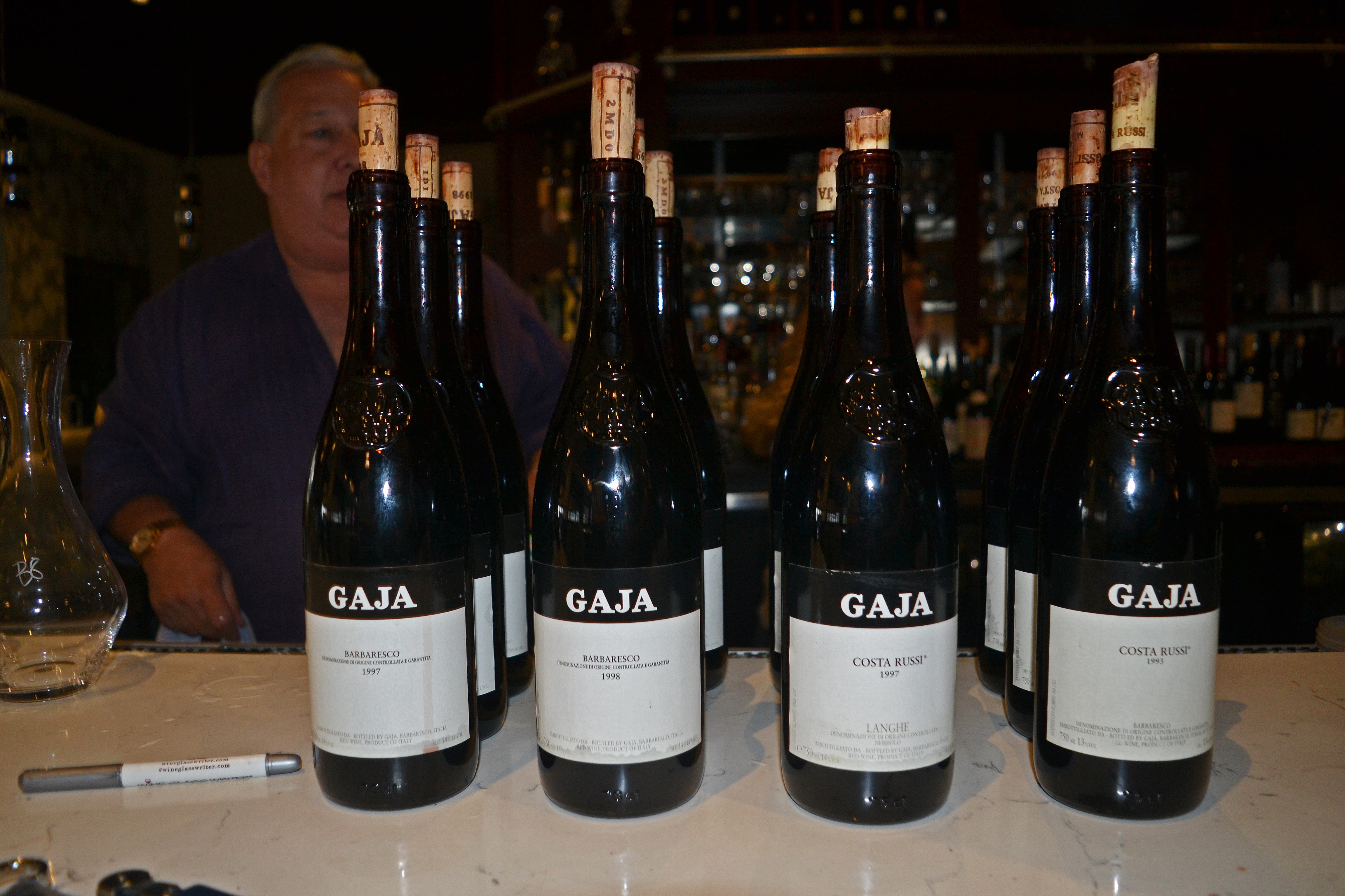 All 12 bottles of Gaja are decanted.