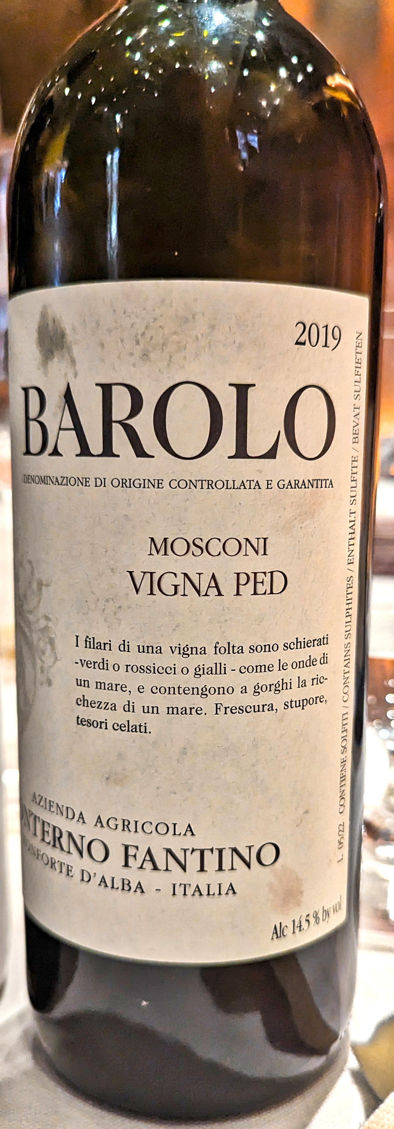 [Roberto said that this is the only single vineyard Barolo he will produce in 2019.