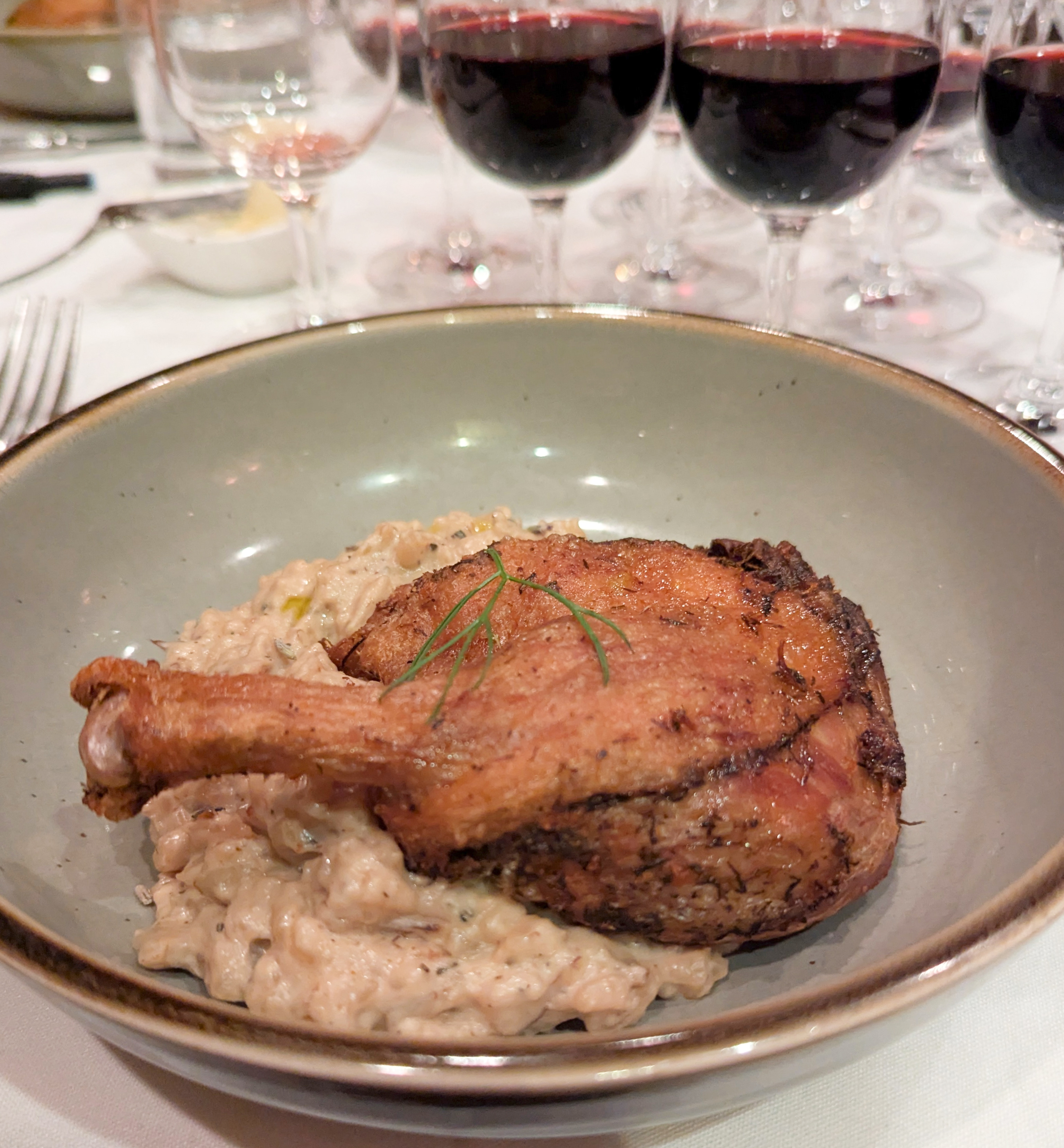 Confit Duck Leg with Porcini Mushroom Risotto made with Chèvre & Lavender: